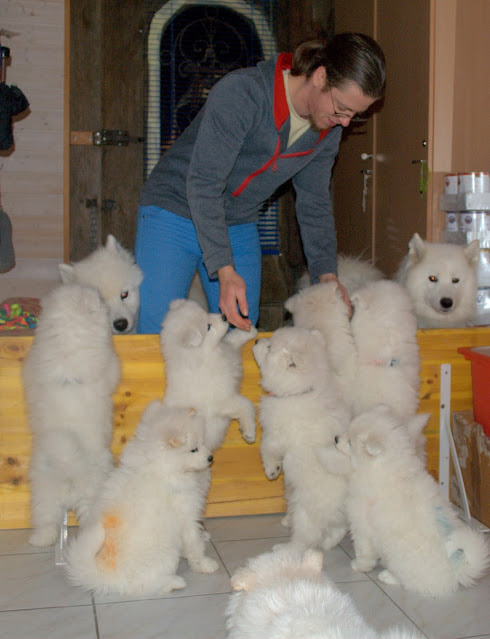 Nun sind die Halsband-Heilsteinketten Tag und Nacht, während Spaziergängen, Wanderungen, Spielen über die Wiesen, im Rudelalltag und im Training nonstop im Einsatz. Das Halsband so dünn und mit langem Zugstopp, damit der Samojedenplez keinen Kragen bekommt, jedoch genug dick damit es als Halsband nutzbar ist. Die Heilsteinkette genug lang damit sie bei lockerem und engem Zugstopp sichtbar ist und genug kurz damit sie die Beinfreiheit gewährleistet.